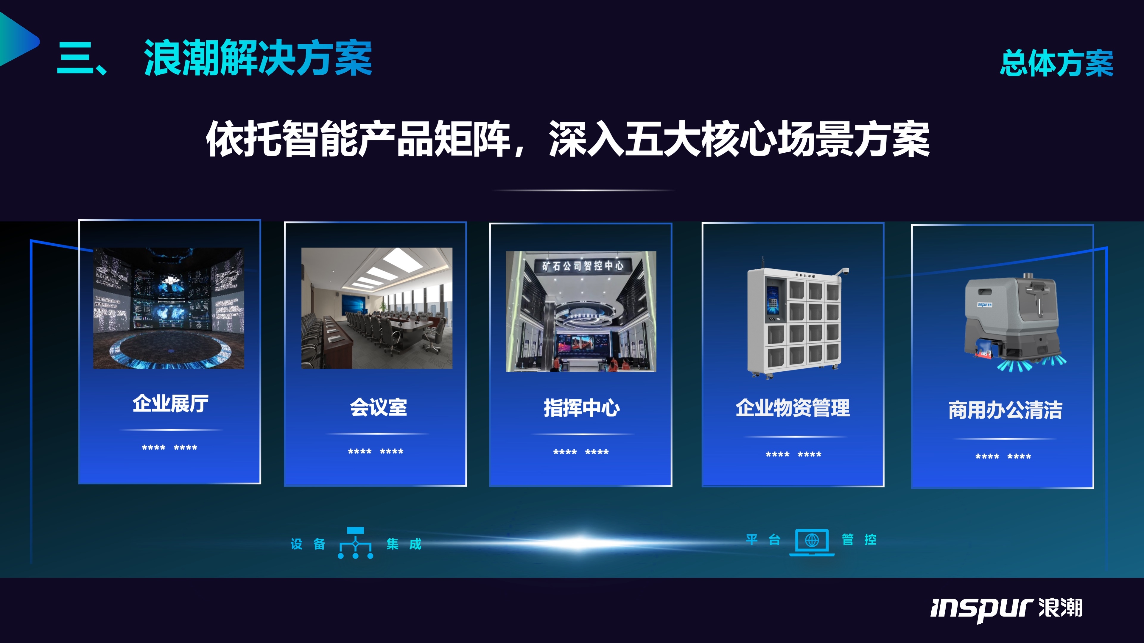 依托于智能终端产品矩阵,深度聚焦并服务于企业展厅、会议室、指挥中心、企业物资管理与商用办公清洁这五大核心场景,提供定制化解决方案。